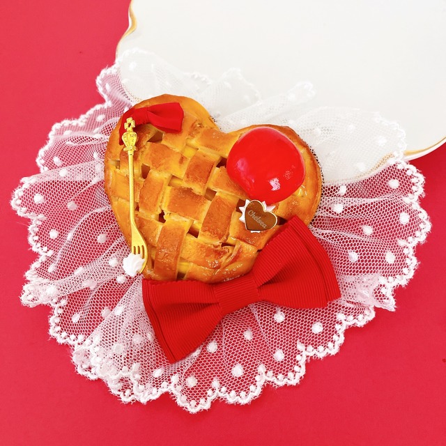 新作♪ ハートアップルパイのヘッドドレス&カチューシャセットです。 ヘッドドレス部分は裏にクリップかついていますので、 カチューシャのお好きな位置につけてお使いいただけます♪ アップルパイ部分は質感を重視した粘土製のため、重みがございます。 髪につける場合、付属カチューシャとの併用をおすすめいたします。 ヘッドドレスのモチーフ約9cm 裏に4.5cmクリップ2個付き カチューシャはメタル製です。 ※丁寧な仕上がりを心掛けておりますが、 ひとつずつハンドメイドのためモチーフには個体差がございます。