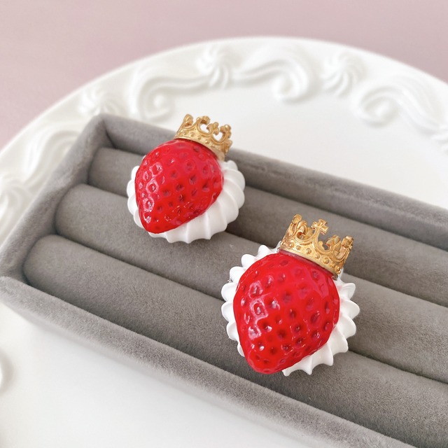 クラウンが可愛い、いちごのフリーサイズのリングです♪ いちごの大きさ 横幅約2cm フリーサイズ