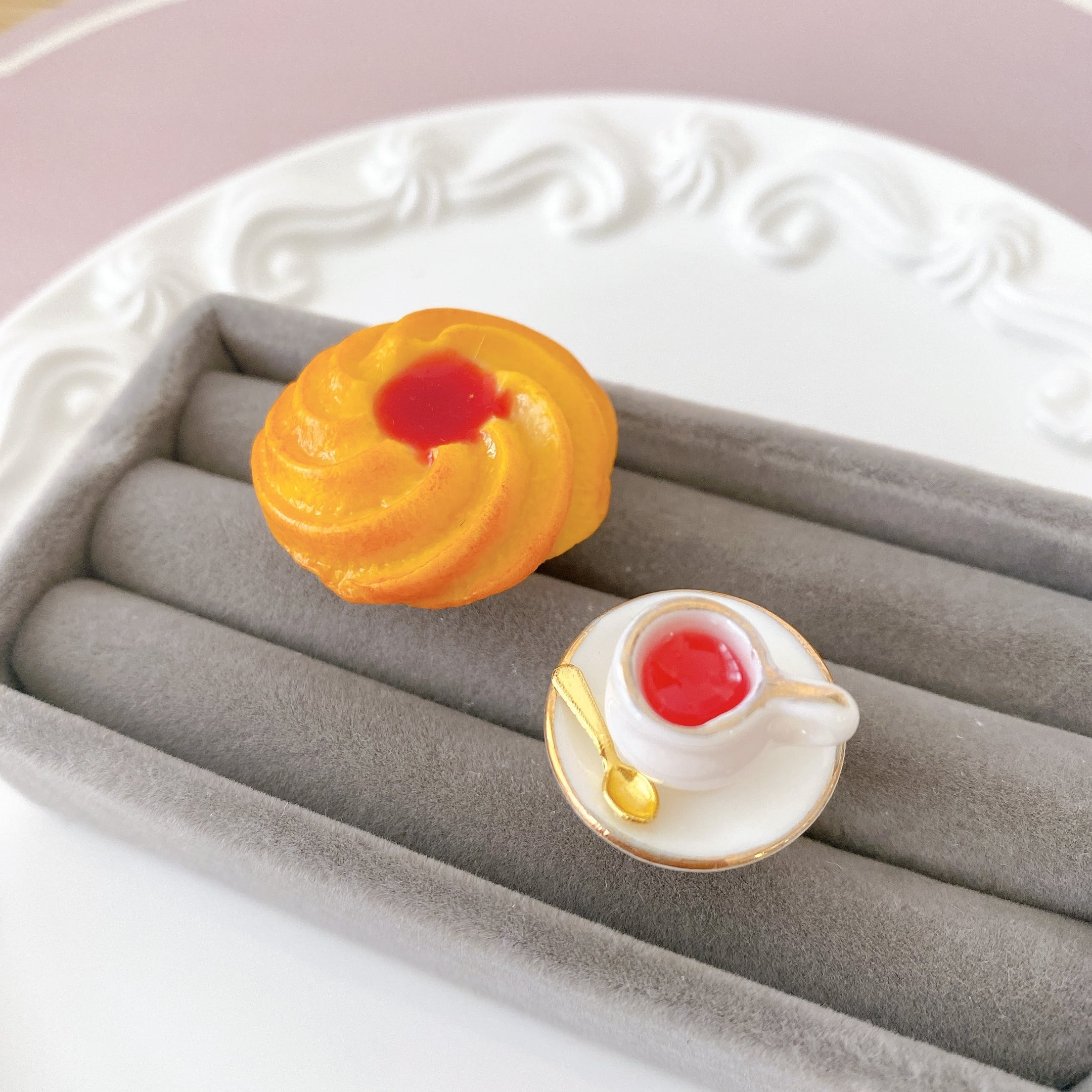 おおきめのジャムクッキーリングとミニチュアサイズのティーカップリングの2本セットです♪