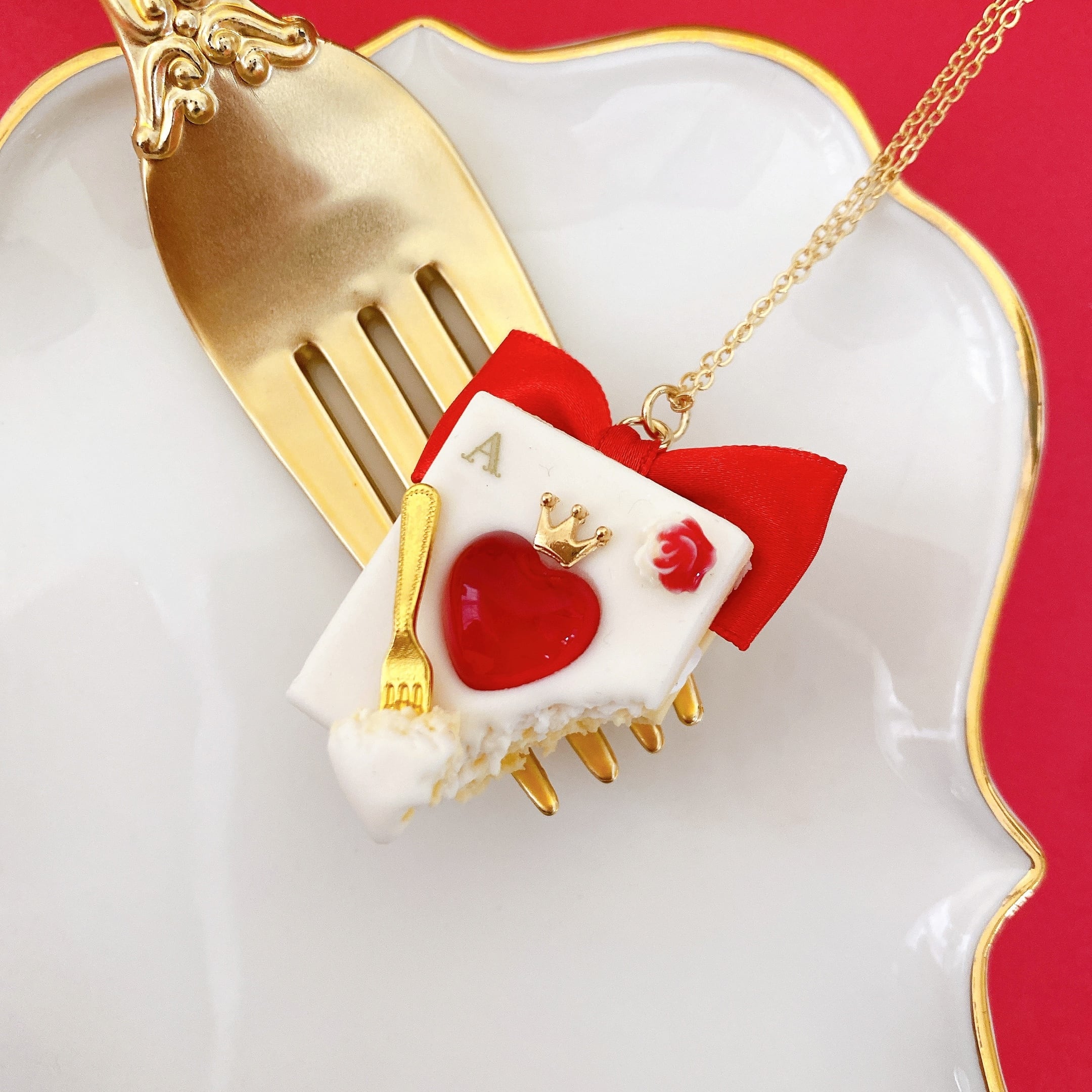 ハートの女王のかじりかけトランプケーキ◆メタルチェーンネックレス