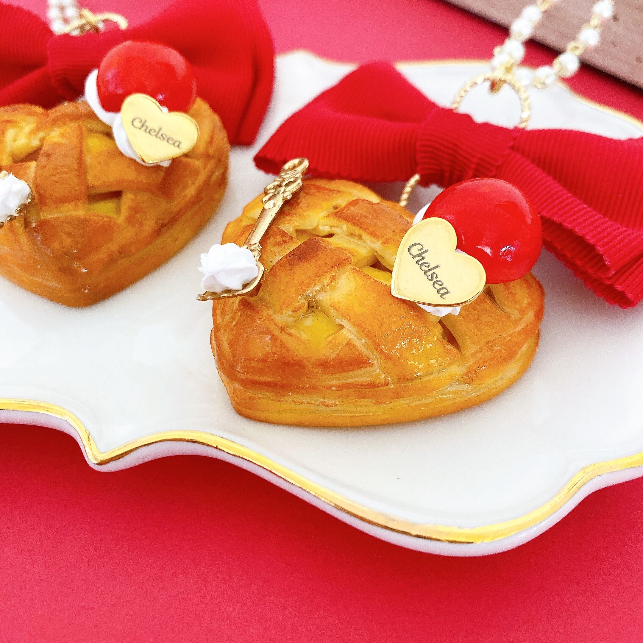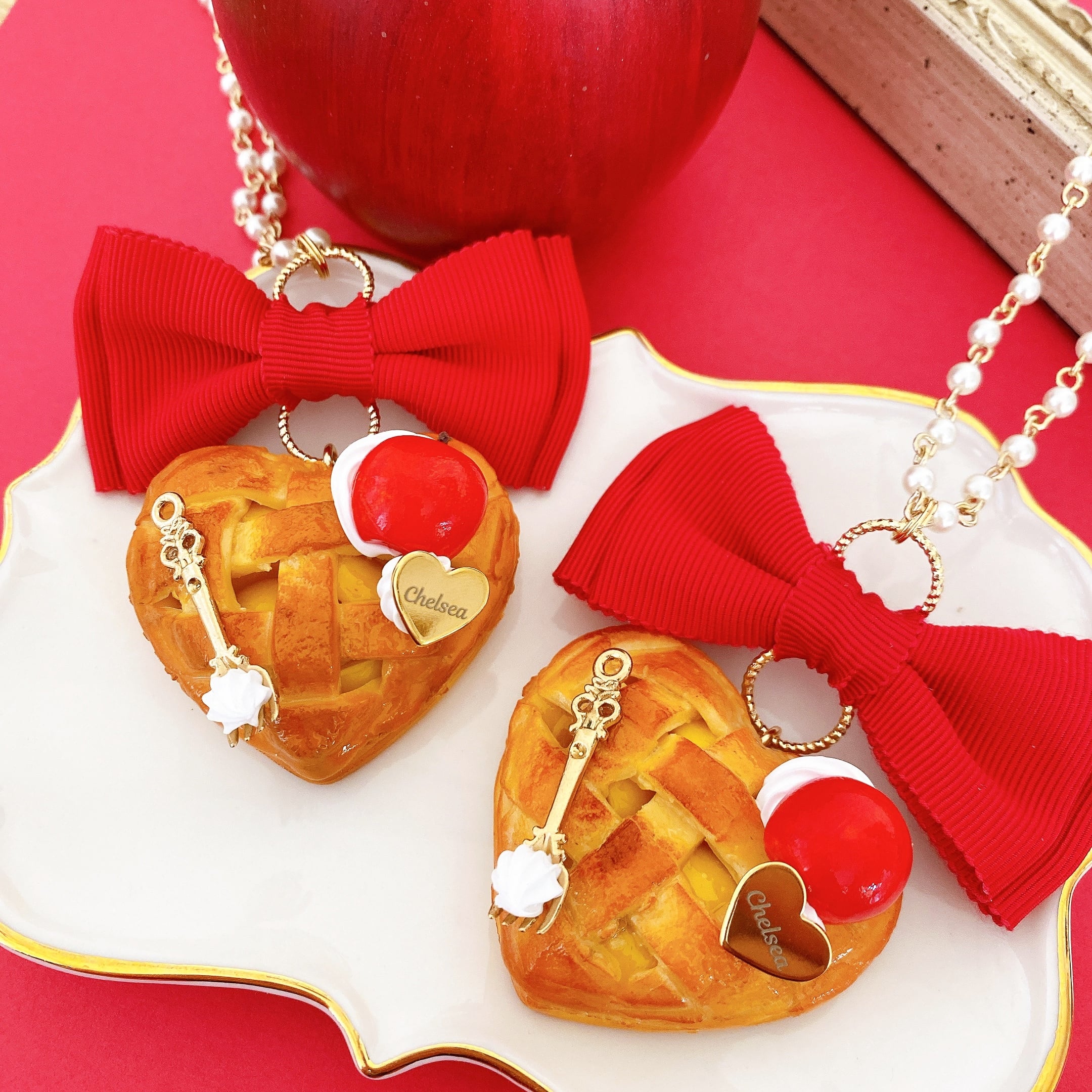 りんごのお茶会/ハートアップルパイ◆ネックレスorバッグチャーム