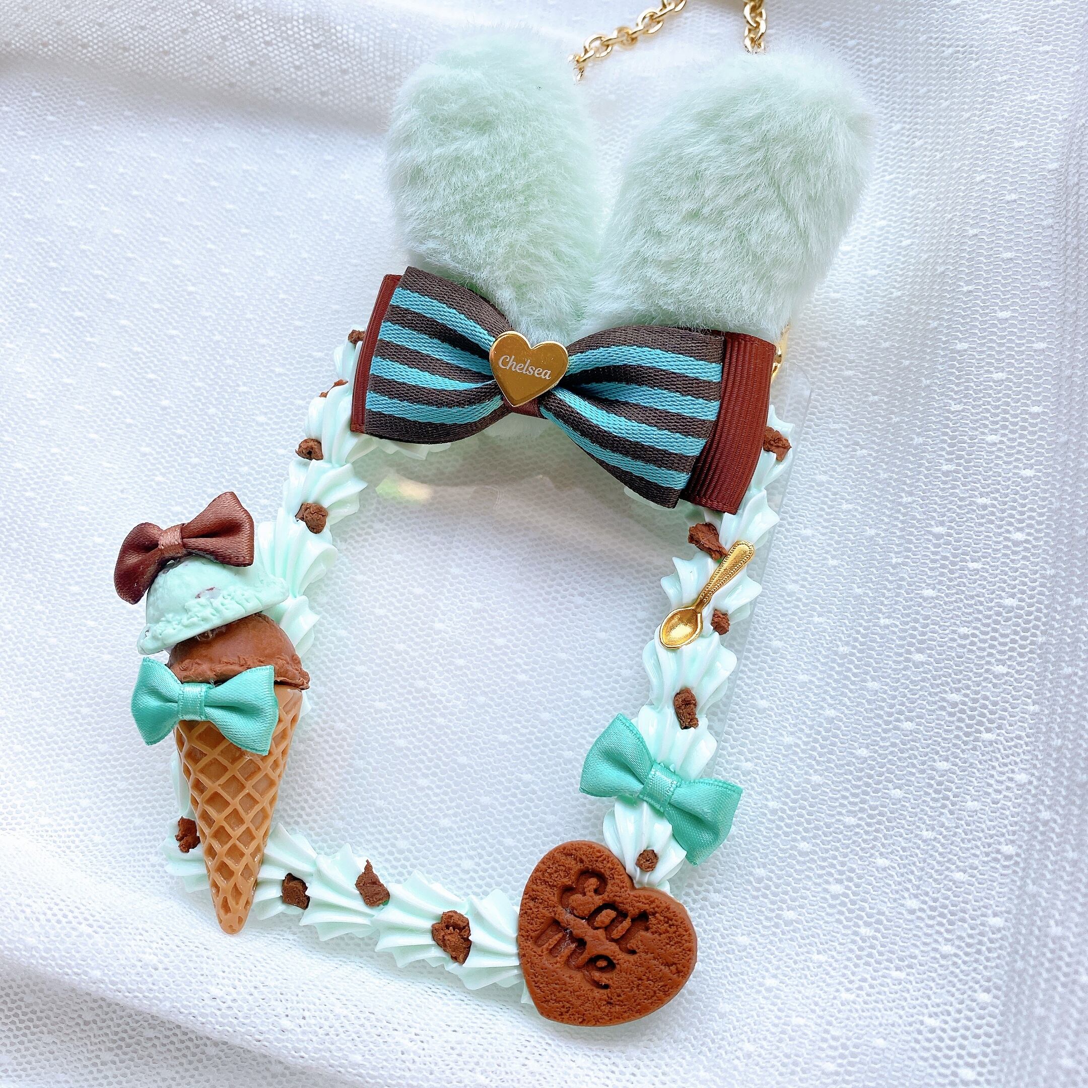 デザインにつきまして、パーツは全て同じですがケースのサイズになどよりデコレーションのバランスが変わります。