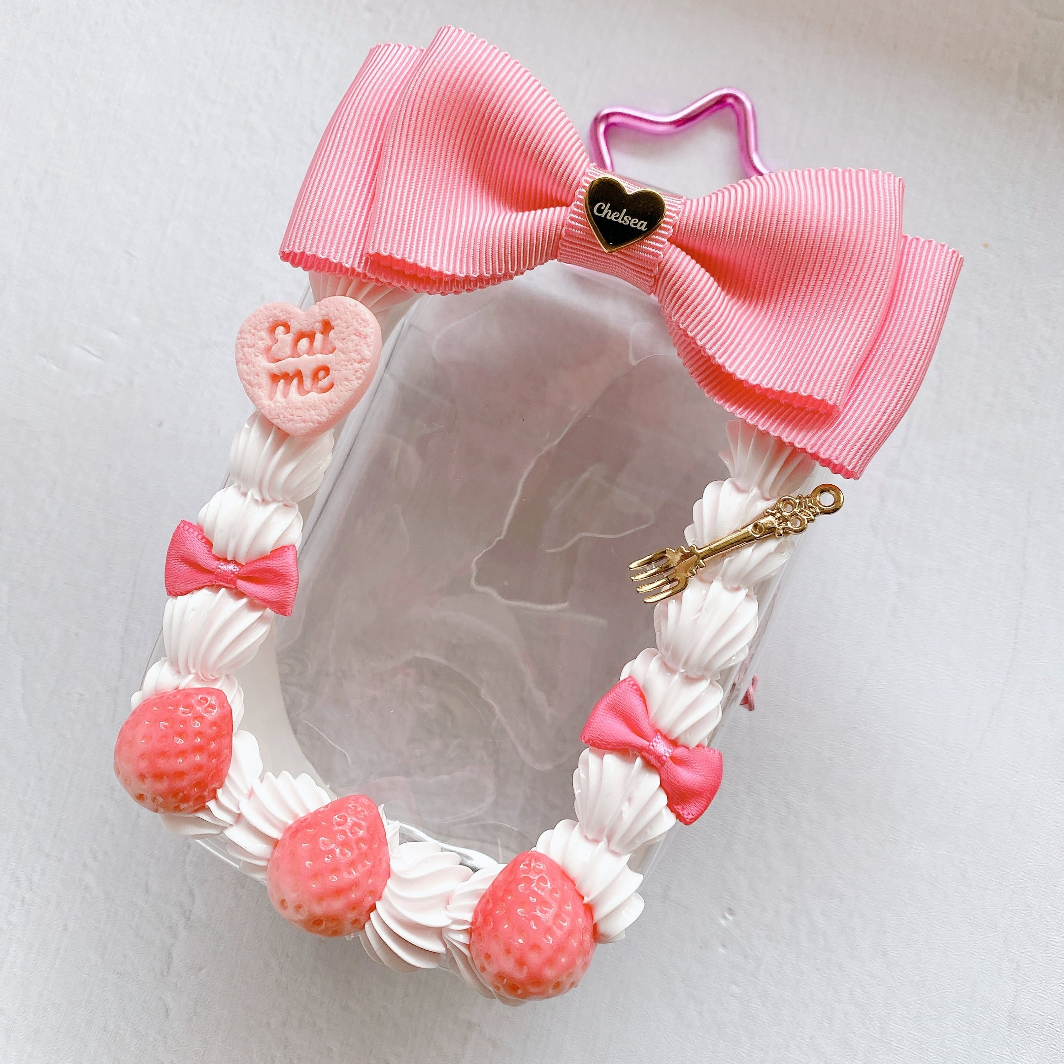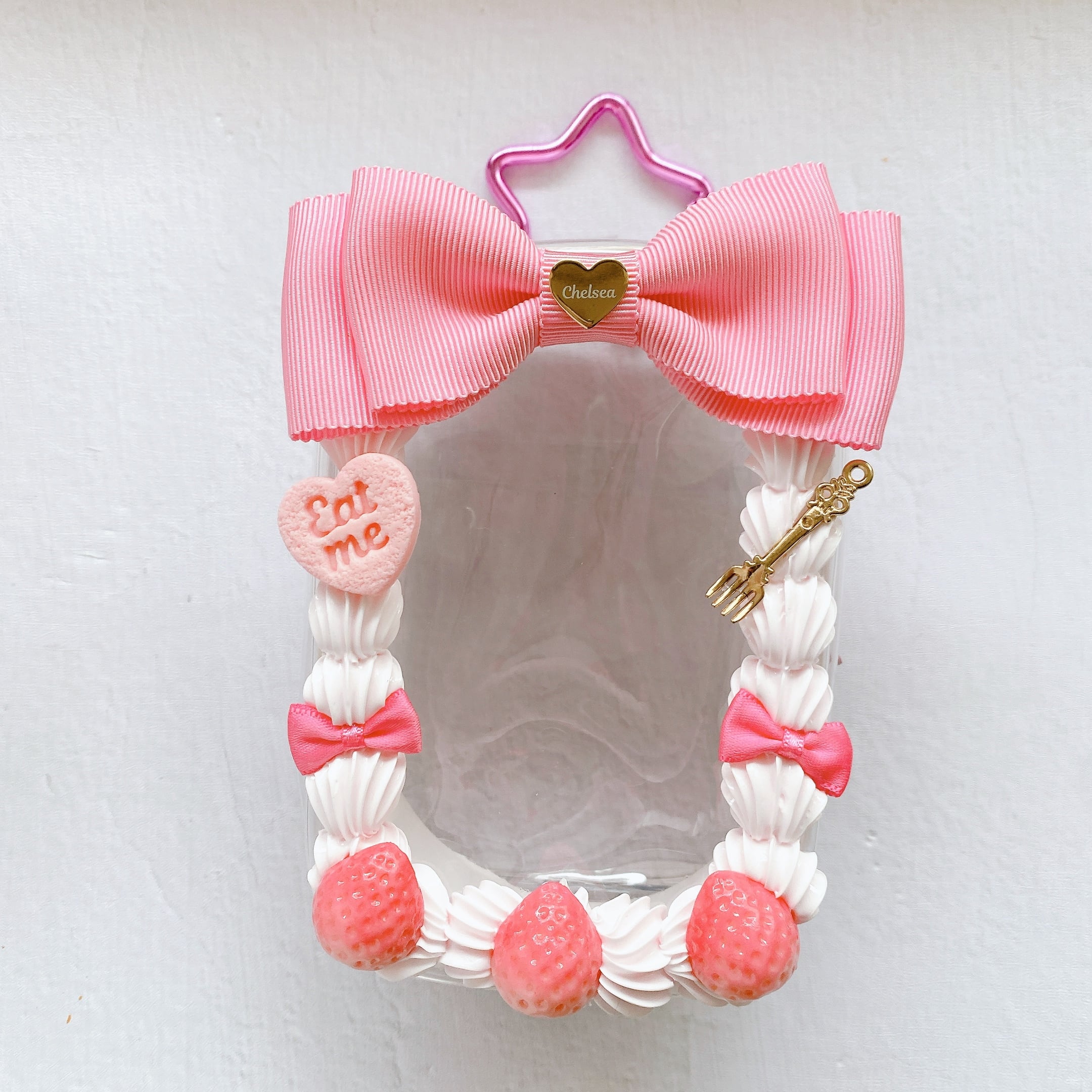 いちごケーキピンク×ピンクいちご◆10〜12cmぬいポーチ