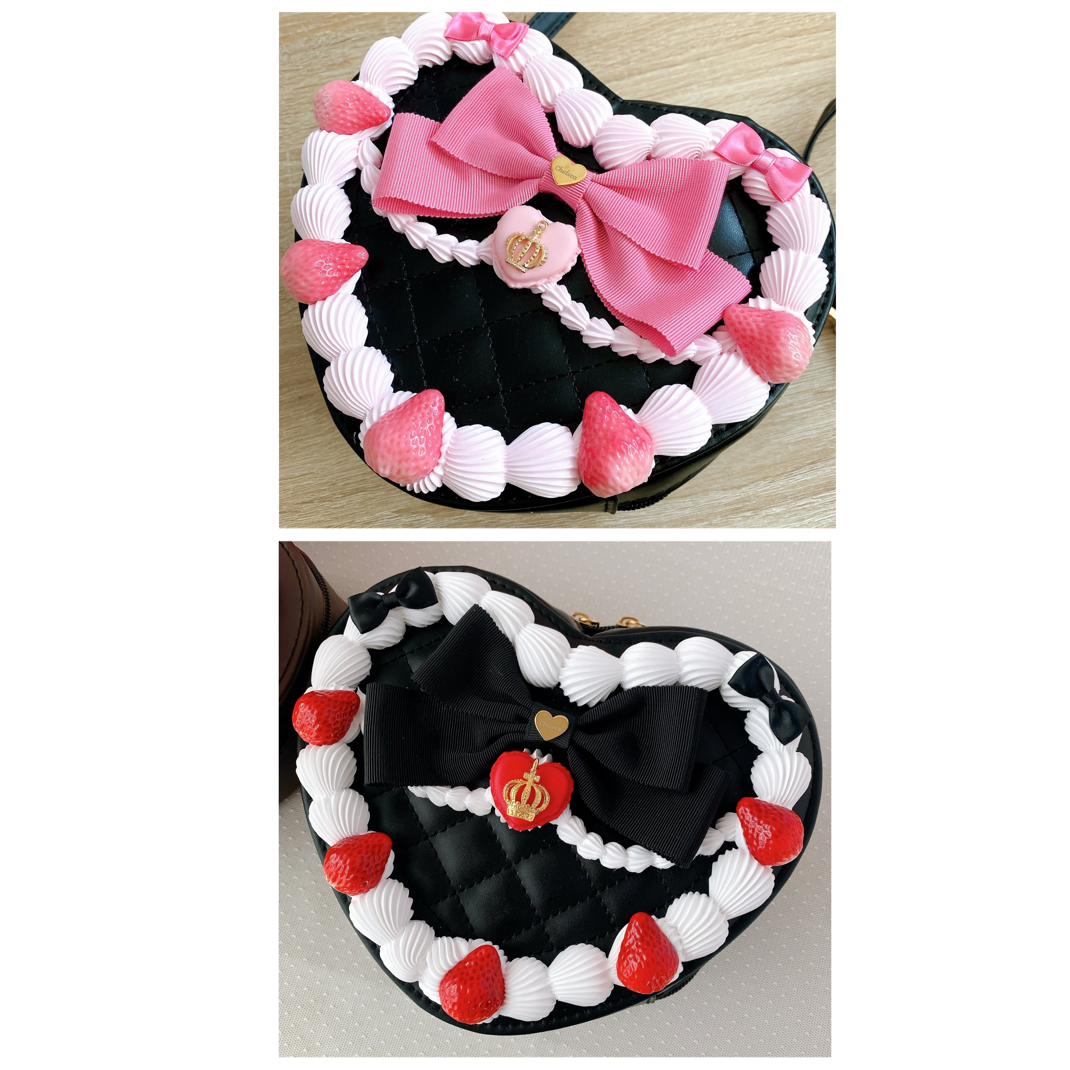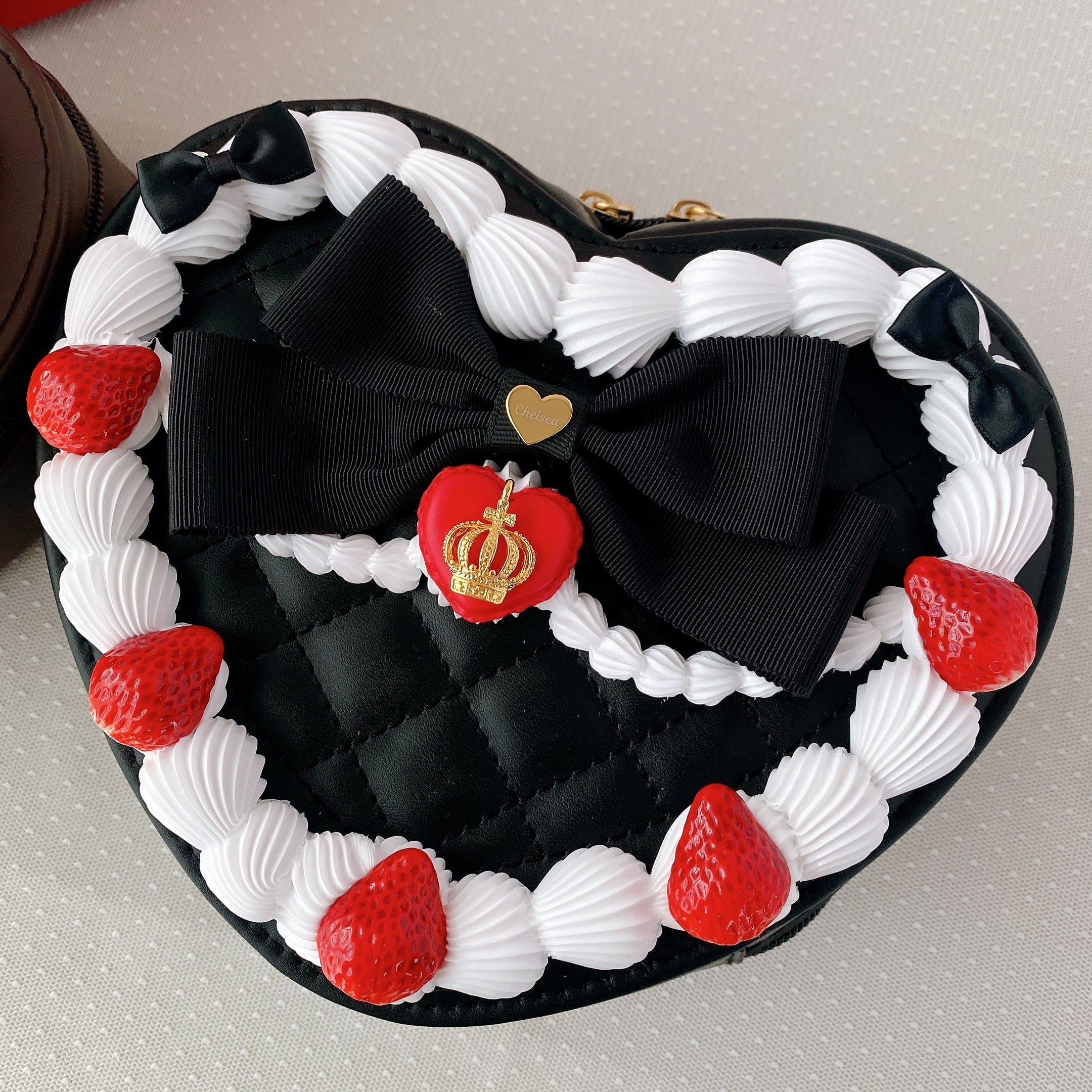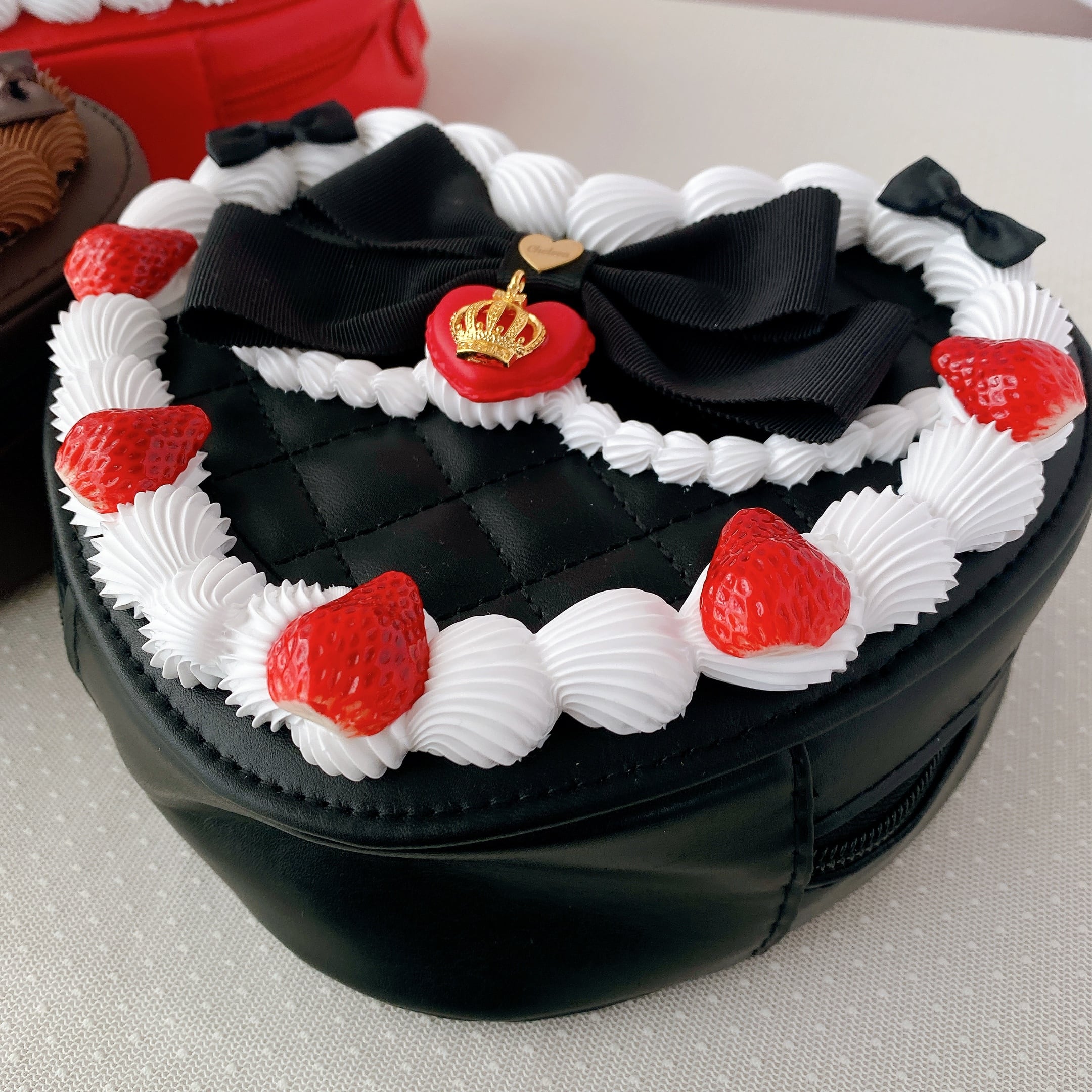 (受注)いちごケーキショルダーバッグ◆黒ベース
