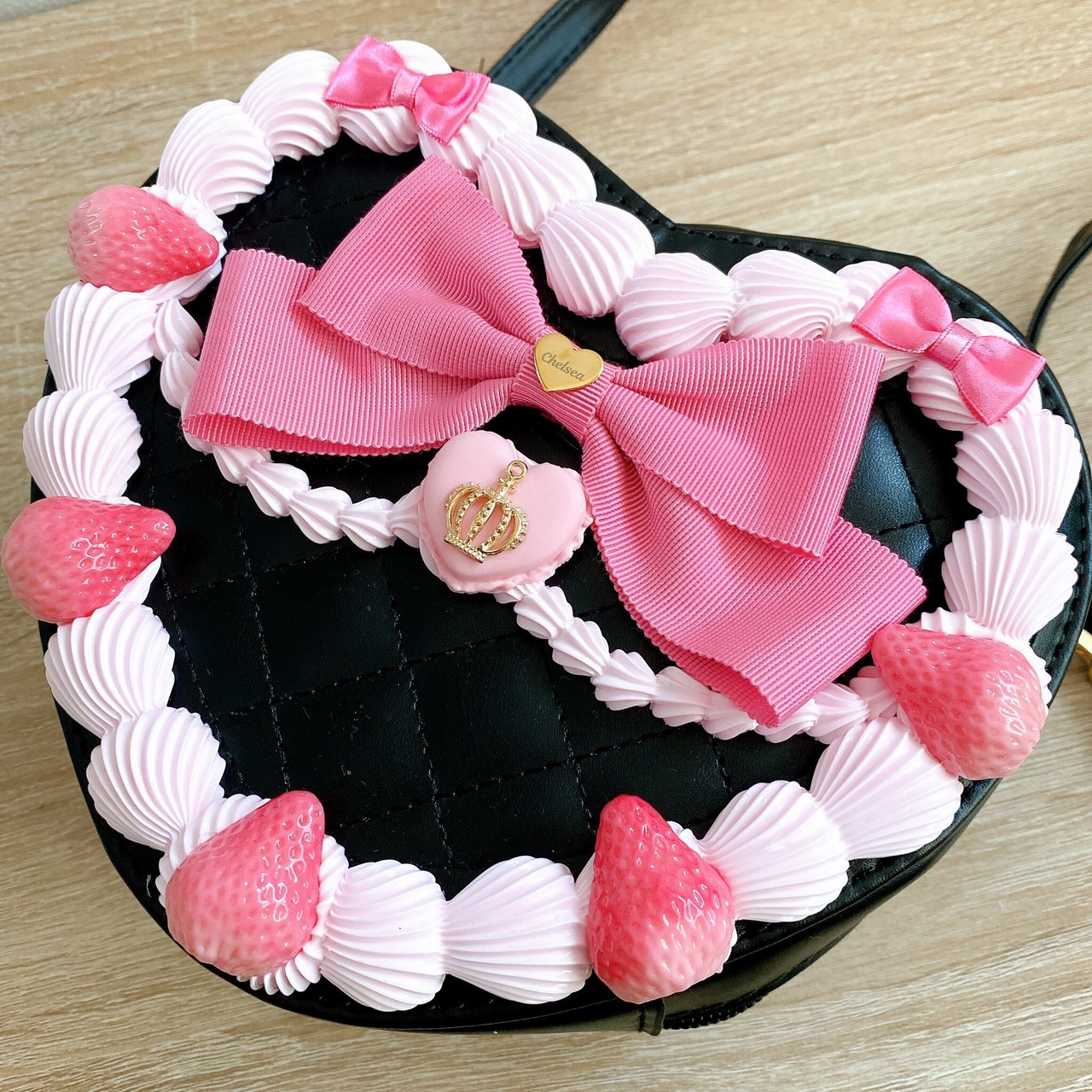 ホイップといちごでデコレーションした、ハート型のショルダーバッグです♪
